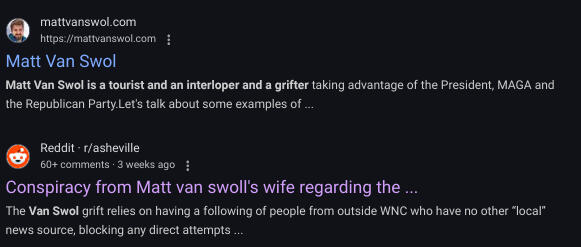 These are the two top search results for "Matt Van Swol grifter:"